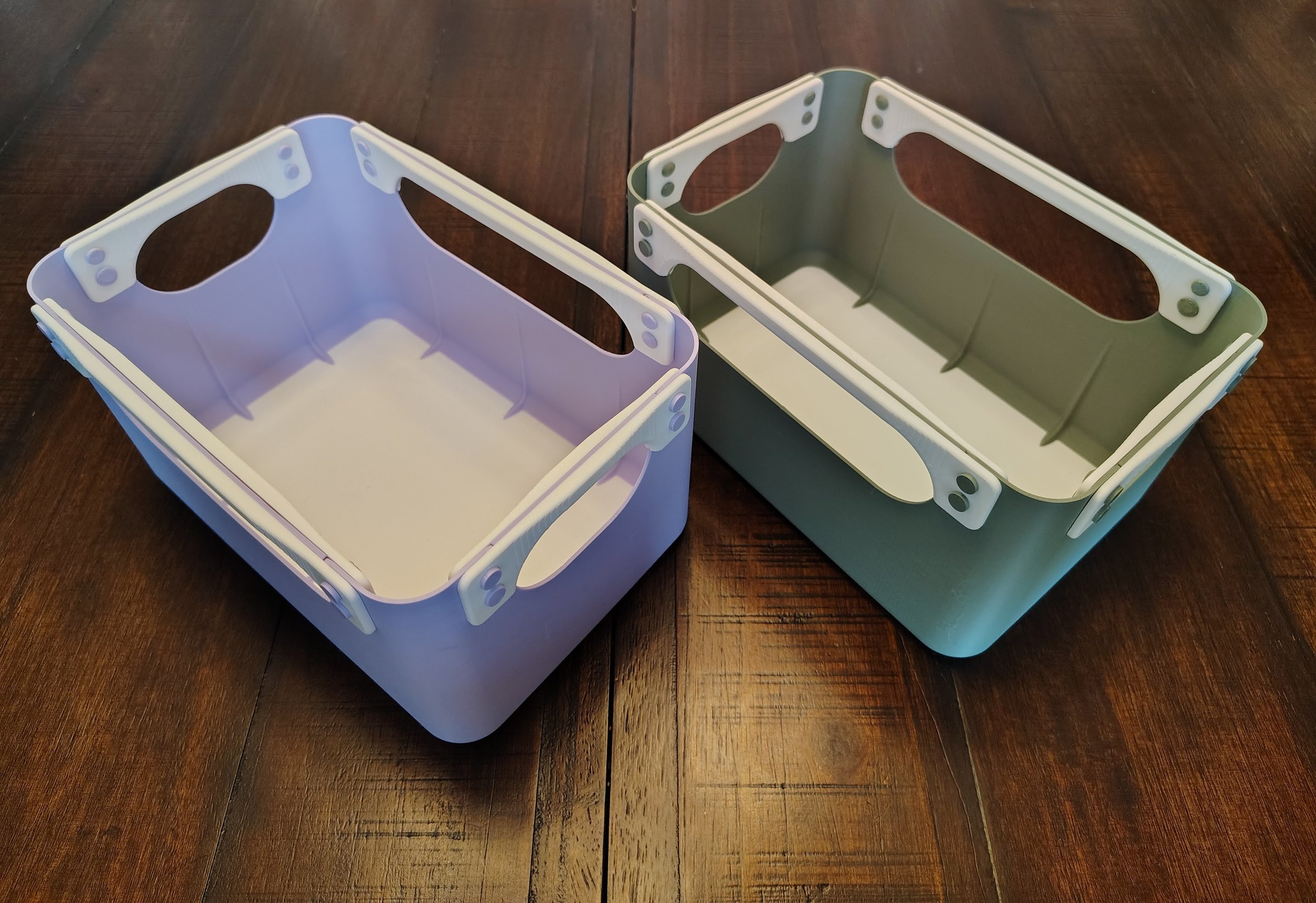The bins pictured measure 6” wide by 9” long and 5” tall. We’ll be adding additional sizes soon, reach out if you have something specific you need, and we will try to accommodate.